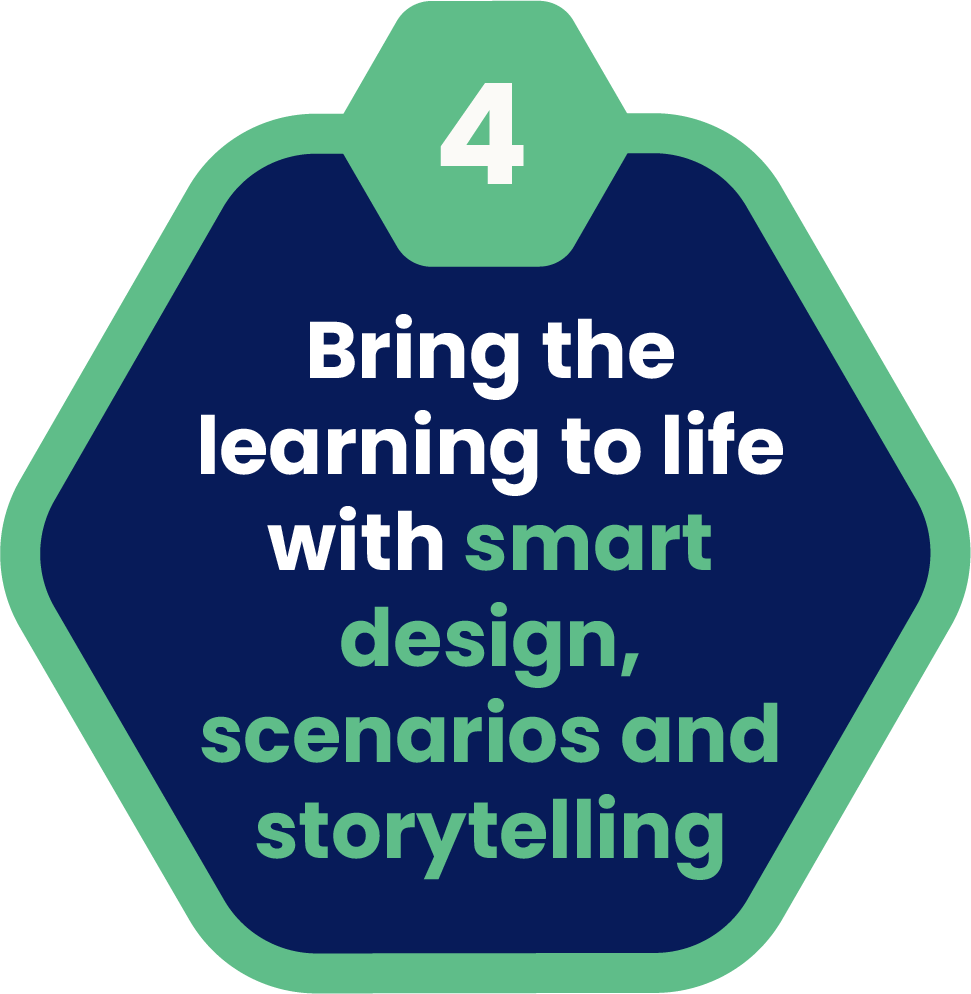We combine the best of all worlds – impactful visuals, engaging gamification, accessible microlearning, and expert content – so that every piece of learning is clear, memorable, and enjoyable.